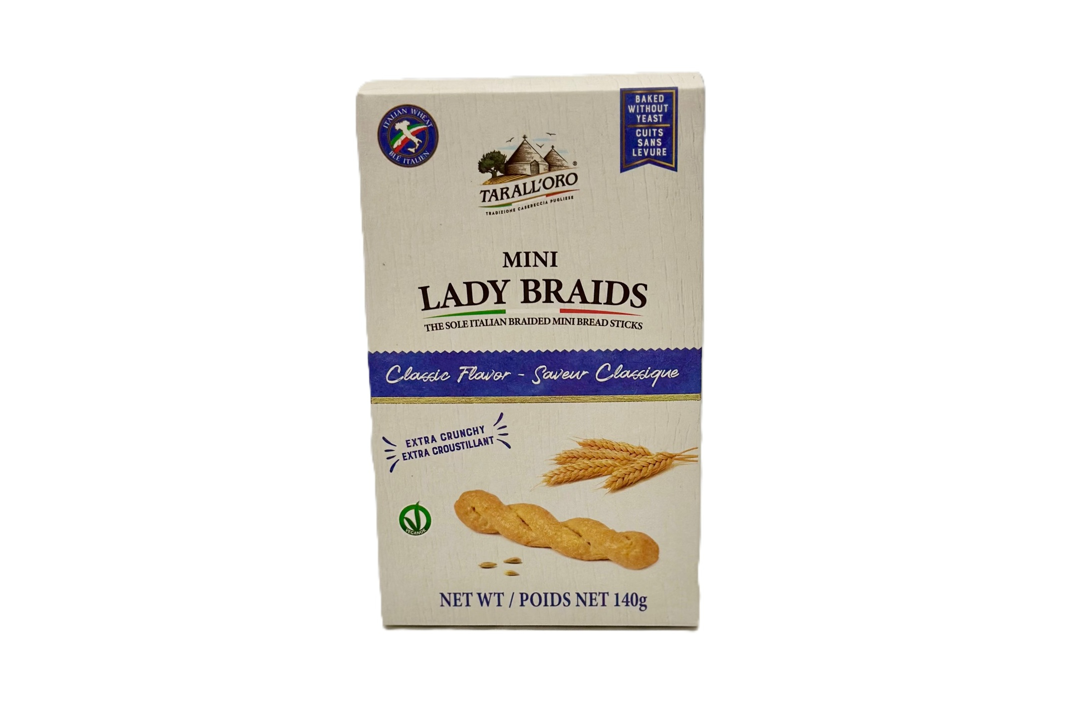 HOME PRODUCTS TARALL'ORO Mini Lady Braids Classic Click the image to enlarge. ⊗ Mini Lady Braids Classic PRODUCT CODE: TA880 BRAND: TARALL'ORO QTY-SIZE: 12 x 140 g ORIGIN: Italy UPC CODE: 659920 000708