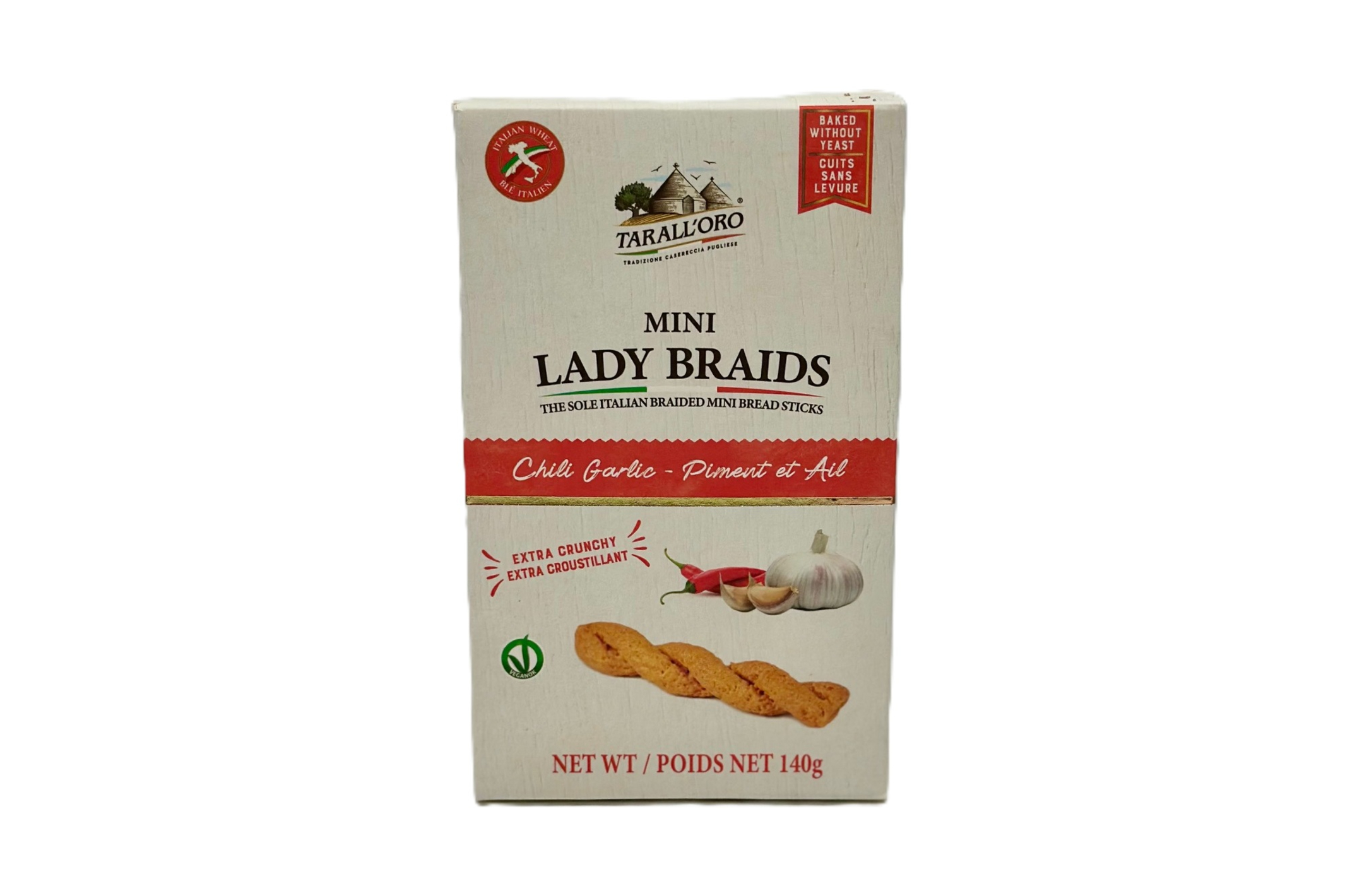 HOME PRODUCTS TARALL'ORO Mini Lady Braids Chili & Garlic Click the image to enlarge. ⊗ Mini Lady Braids Chili & Garlic PRODUCT CODE: TA885 BRAND: TARALL'ORO QTY-SIZE: 12 x 140 g ORIGIN: Italy UPC CODE: 659920 000685